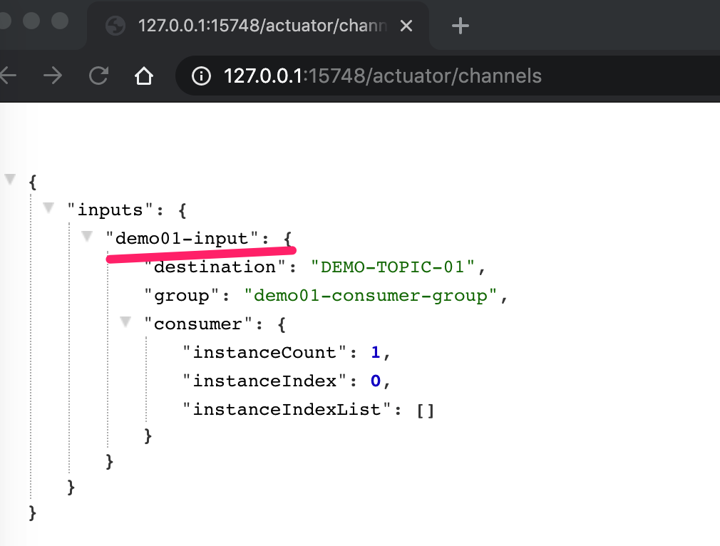 ③ 访问应用的 channels 监控端点 http://127.0.0.1:15748/actuator/channels,返回结果如下图: