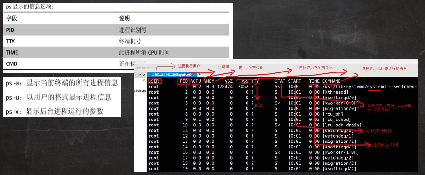 ps -aux //查看运行进程 chkconfig //查看服务启动状态 systemctl //管理系统服务器