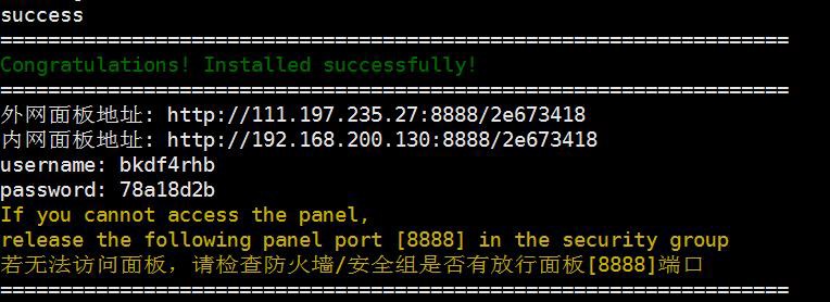 - 安装成功后控制台会显示登录地址,账户密码,复制浏览器打开登录,