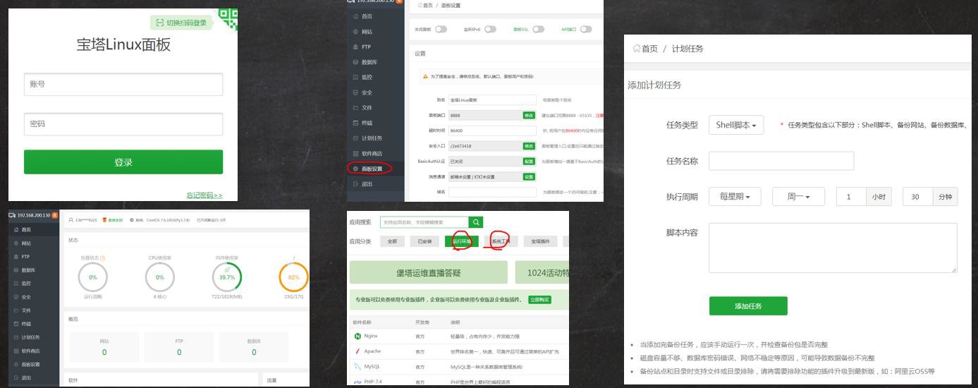 使用介绍, 比如可以登录终端, 配置,快捷安装运行环境和系统工具, 添加计划任务脚本