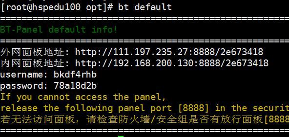 如果bt 的用户名,密码忘记了,使用 bt default 可以查看