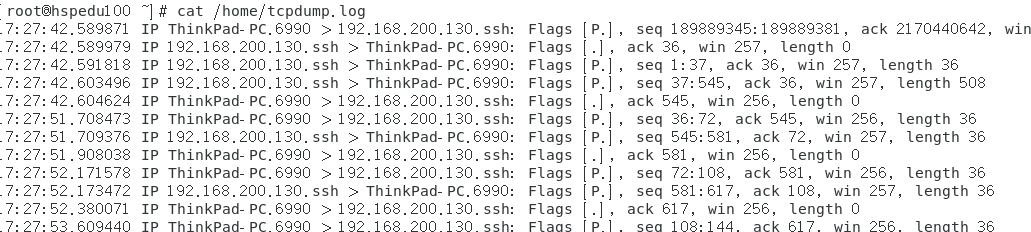tcpdump -i ens33 host 192.168.200.1 and port 22 >> /home/tcpdump.log