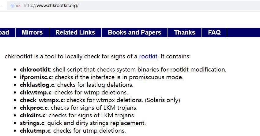 - 可以利用工具,比如 chkrootkit/rootkit hunter 检测 rootkit 脚本(rootkit 是入侵者使用工具,在不察觉的建立了入侵系统途径) [演示使用 wget ftp://ftp.pangeia.com.br/pub/seg/pac/chkrootkit.tar.gz ]